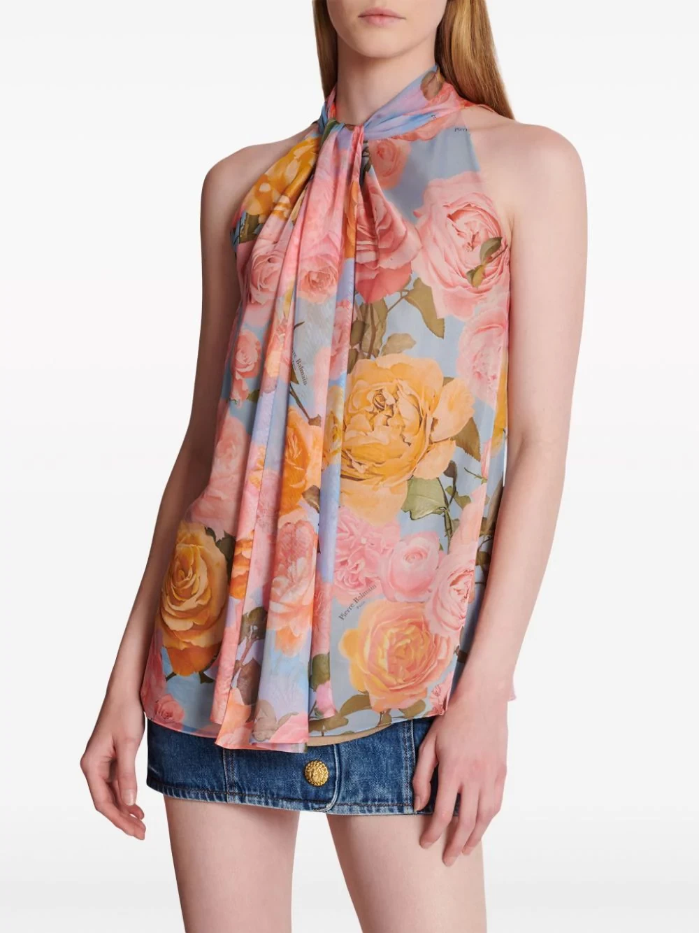 Balmain tie-neck floral-print blouse