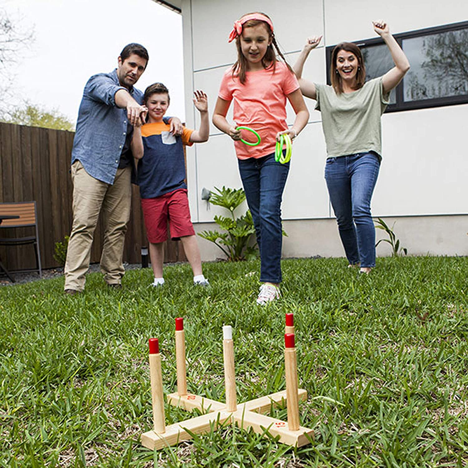 DURABLE WOODEN CONSTRUCTION: Designed for ultimate durability, this long lasting ring toss set is made from solid wood, ensuring it will withstand regular outdoor use on camping trips, during backyard barbecues or on the playground