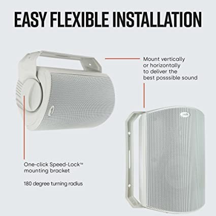 Atrium's One Button SPEED-LOCK Mounting Bracket provides easy non-slip one-button mounting - mount speakers vertically or horizontally to provide the best sound in every situation. Just install the swivel C-bracket, adjust the angle and click to secure the speaker