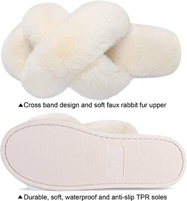 Women's Cross Strap Slippers Soft Plush Comfortable Open Toe Home Shoes Indoor and Outdoor Artificial Rabbit Fur Warm and Comfortable Slip-On Breathable